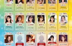 还记得这张图吗?这是片商Faleno集团要在年底这两个月举办的大感谢祭活动,总共有24位女优会登场,一开始公布的时候有「五大神秘」没有露面,而在「泷本くるみ(泷本胡桃)」和「筿宫るい(筿宫留衣)」先后情报解禁后,目前只剩三个格子要填空了: