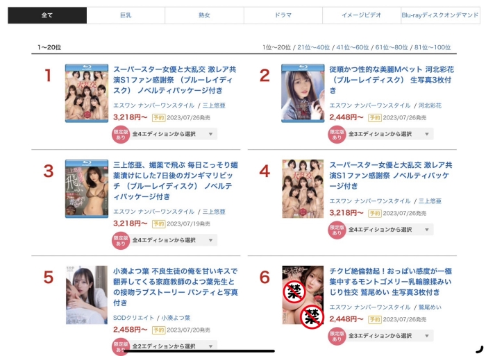 这是本周的销售排行榜(不要问我为什么FANZA这么快就公布,事务所的人也不大清楚)。