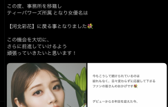 河北彩伽有大事宣布!是什么事呢?答案是她「又」转换经纪公司了,从现在开始,她就是经纪公司T-Powers的人惹,名字也要改回「河北彩花」了〜