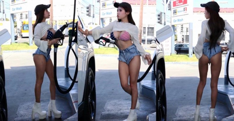 加油常常有些贈品或點數可以拿,但沒想到跟JKF女郎Bebe韶瑄一起加油,除了巨乳以外,還有翹臀微笑線!最近Bebe韶瑄到美國度假,她分享了一段自己到加油站加油的影片,畫面中Bebe韶瑄不忘耍辣,不僅爆乳還露出了一雙長腿,讓人看了血脈賁張。
