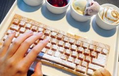 許多人喜歡帶著筆電到咖啡廳工作,因爲相信在優美音樂、放松的氣氛下工作能夠更聚精會神的工作、提高工作效率(小編:其實只是想花錢享受文青的氛圍XD(誤)),搭配著咖啡和松餅一起工作更是再平常不過的事了,但要是松餅變成鍵盤的模樣,你會做何感想呢? 在韓國濟州島電腦博物館(Nexon Computer Museum)的主題咖啡廳裡,就提供了不同于一般傳統形狀的鍵盤松餅和滑鼠面包!! 特制的鍵盤松餅搭上莓果醬和美味的冰淇淋,讓人想將真正的筆電放在一旁、把工作抛在腦后,專心的享用”鍵盤”大餐!! 一格一格的鍵盤,真是讓人忍不住想要敲打阿!! 這樣美味的滑鼠,無論來上幾個都照單全收啊~電腦博物館也因著這樣特殊的鍵盤餐擄獲衆多韓國青年的芳心呢!有機會去到韓國的朋友可千萬別錯過了。