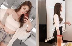 今天來和大家分享一個美女講師!白襯衫和黑包裙想必是精明幹練職場女性的標準配備,而這位正妹穿起OL套裝特別有架勢,尤其是側面看過去一個大寫的S字型有夠搶眼,瞬間就吸引了絕大多數人的目光,也不曉得還有幾個人在認真聽講座捏? 原來講座的內容是關於美胸的保健,講師則是名叫「睿睿」的這位正妹,看著他精緻漂亮的臉蛋和曼妙玲瓏的曲線,感覺好有說服力!連他的朋友都在下面留言表示「我覺得你襯衫要爆了」、也有人表示「很明顯鈕扣給力」,此話言之有理,畢竟能撐住這麼兇猛的長輩,衣服鈕扣質量應該很優秀!