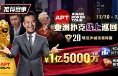 【EV扑克】推荐赛事:11月10日-12月1日APT亚洲扑克线上巡回赛20场亚洲城市奖杯赛1亿5000万保底